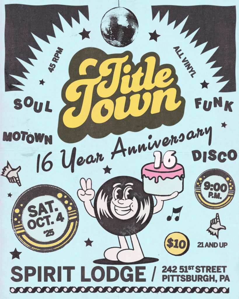 Bringing freshness to Pittsburgh’s clubs since 2009, TITLE TOWN stays true to its original sound, residents J.Malls & Gordy G. take you on a journey across the musical landscape – resurrecting deep soul, funk and disco cuts from the early-1960s through the late 1980s – mixing up rarities from Honey & The Bees, The Third Guitar, and Family of Eve with stone cold classics from Aretha, James Brown, Sister Sledge, The Spinners, Curtis Mayfield, Gwen McCrae and more.